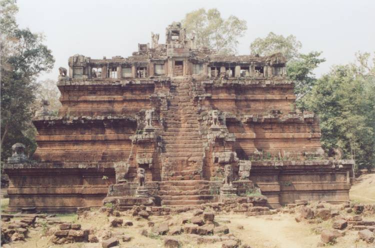 Myself, at the foot of the central tower at the top of Angkor Wat. |