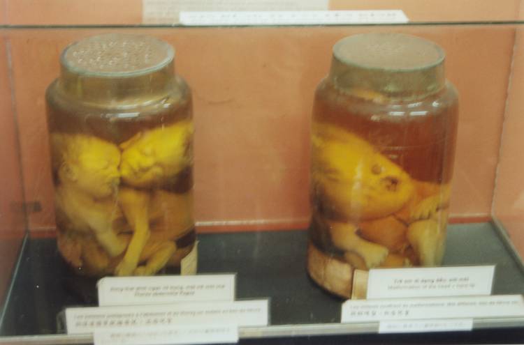 Babies deformed by exposure to defoliants, on display at the War Remnants Museum. |
